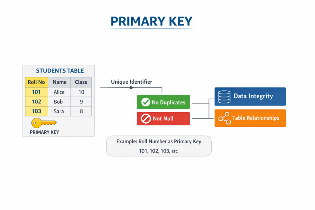 For example, a school database may store student names, roll numbers, classes, and marks. Instead of writing this information in notebooks or saving it in simple files, a database stores it digitally in tables.
